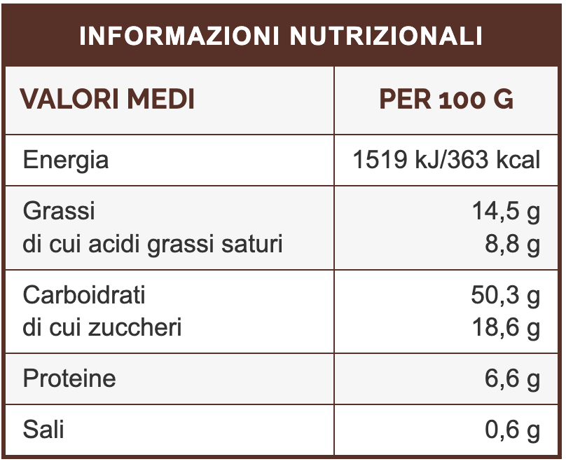 Può contenere tracce di soia, frutta a guscio e sesamo.
